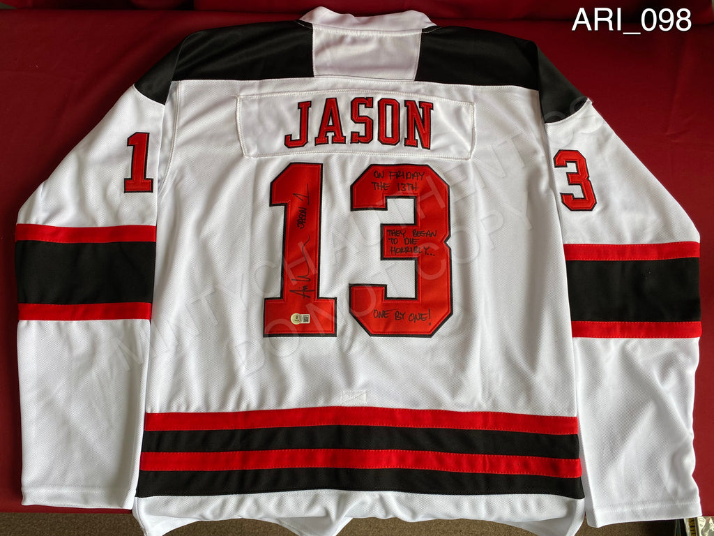Jason Voorhees Hockey Jersey Signed By Ari Lehman In Black