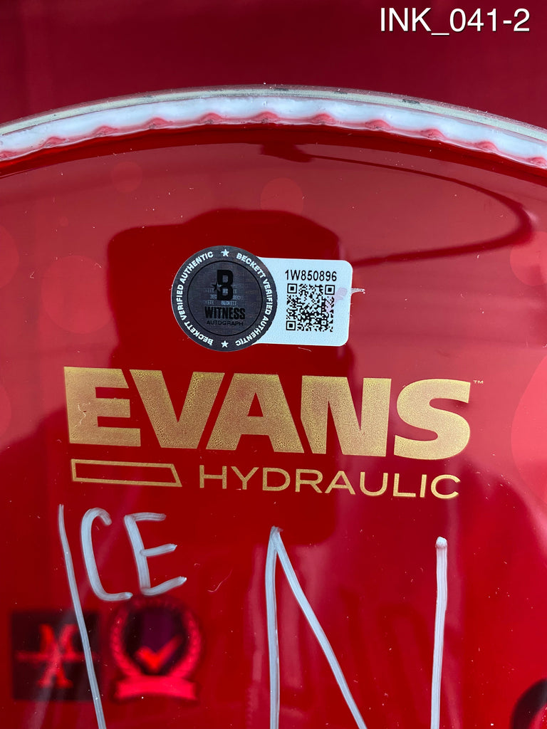 Evans 12 Inch Red Drumhead Signed By Ice Nine Kills members Spencer Charnas, Dan Sugarman, Joe Occhiuti, Ricky Armellino & Patrick Galante In Silver