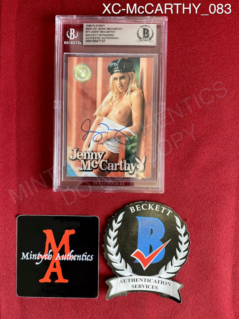 1998 Playboy Best Of Jenny McCarthy #71 Jenny McCarthy Trading Card (Slabbed) Signed By Jenny McCarthy In Blue