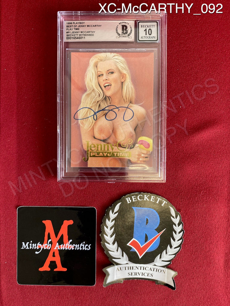 XC-McCARTHY_092 - 1998 Playboy Best Of Jenny McCarthy Play Time #P1 Jenny McCarthy (Auto Grade 10) Trading Card (Slabbed) Autographed By Jenny McCarthy